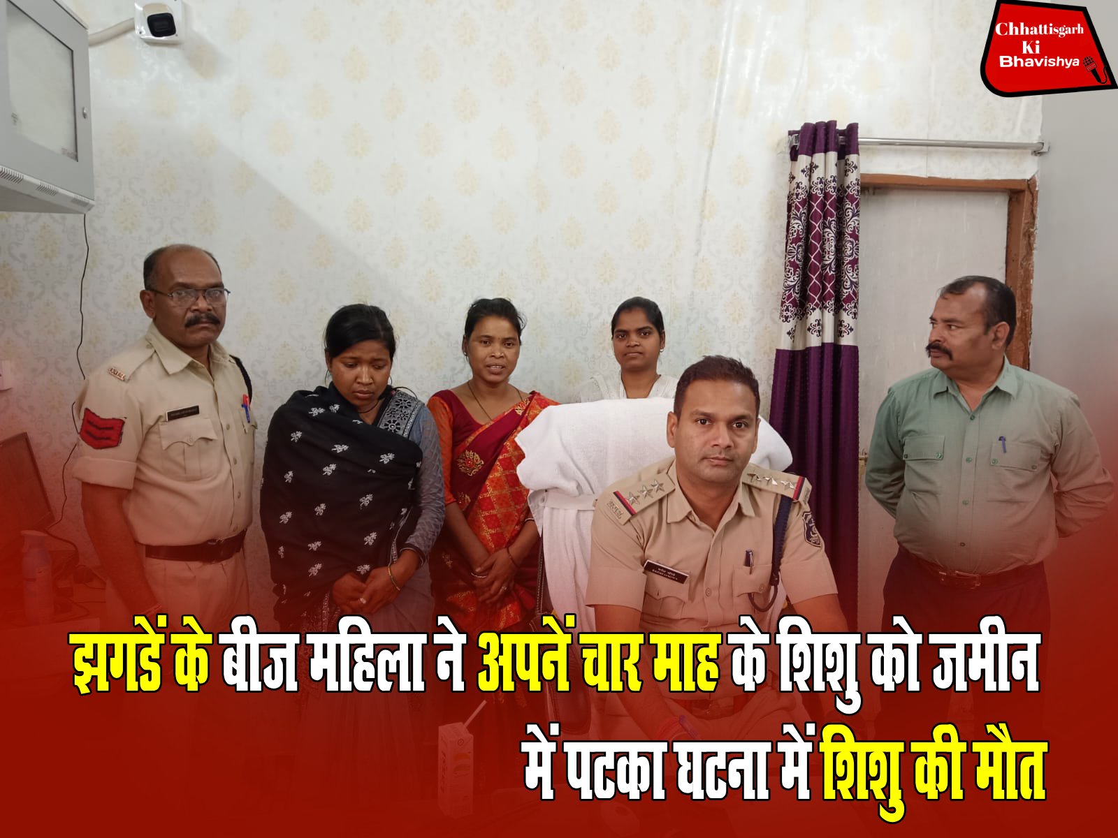 रायगढ़- लैलूंगा पुलिस ने 4 माह के शिशु की हत्या के अपराध में शिशु की निर्दयी मां और आरोपिया की सगी बड़ी बहन को गिरफ्तार किया गया है । अपराध को छिपाने घरवालों ने शिशु के उसकी मां के हाथ से गिर जाने से सिर में आई चोट की झूठी और मनगढ़ंत रिपोर्ट दर्ज कराया गया था । पीएम रिपोर्ट में शिशु के सिर पर आई चोट किसी भारी ठोस वस्तु से प्रहार करने या टकराने की वजह से हिंसात्मक व्यवहार लेख किया गया है । मामले की गंभीरता को देखते हुए पुलिस अधीक्षक श्री दिव्यांग कुमार पटेल के दिशा निर्देशन, एडिशनल एसपी आकाश मरकाम एवं एसडीओपी धरमजयगढ़ श्री सिद्धांत तिवारी के मार्गदर्शन पर थाना प्रभारी लैलूंगा निरीक्षक राजेश जांगड़े द्वारा सूक्ष्मता से जांच किया गया । जांच दौरान पीएमकर्ता महिला चिकित्सक की पृथक से राय ली गई । पीएमकर्ता ने चोट को साधारण गिरने से आई चोट का होना नहीं बताई । थाना प्रभारी द्वारा मृतक की मां और घरवालों से कड़ाई से पूछताछ किया गया जिसमें घटना का खुलासा हुआ।