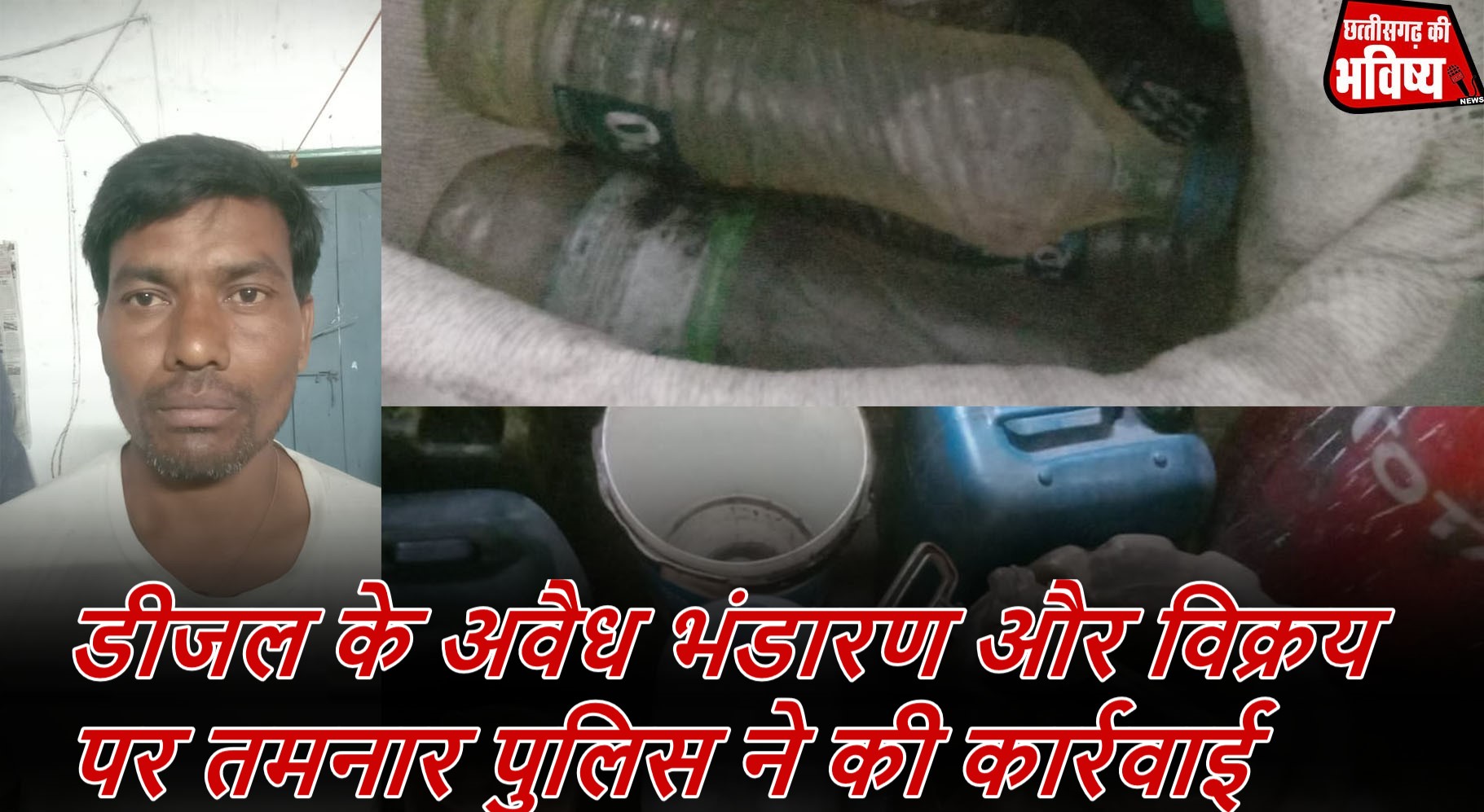 रायगढ़ - पुलिस अधीक्षक श्री दिव्यांग कुमार पटेल द्वारा सभी थाना/चौकी प्रभारियों को ज्वलनशील पदार्थ पेट्रोल/डीजल का खतरनाक तरीके से संग्रहण कर अवैध बिक्री पर निगाह रखकर कार्रवाई के निर्देश दिए गये हैं, निर्देशों के तारतम्य में कल शाम थाना प्रभारी तमनार निरीक्षक आर्शीवाद राहटगांवकर के नेतृत्व में मुखबीर सूचना पर तमनार पुलिस की टीम द्वारा ग्राम खुरूसलेंगा में पंचम राठिया के घर कार्रवाई के लिए दबिश दिया गया । पुलिस को सूचना मिली थी कि पंचम राठिया अपने घर में अवैध रूप से ज्वलनशील पदार्थ डीजल का भण्डारण कर बिक्री करता है । सूचना पर पुलिस टीम द्वारा गवाहों के साथ पंचम राठिया के घर चेक किया गया जिसमें घर की परछी में कई प्रकार के प्लास्टिक ब्लाडर, जरीकेन एवं पानी बाटल में करीबन 200 लीटर अवैध ज्वलनशील पदार्थ डीजल को भण्डारण कर रखना पाया गया । पुलिस ने डीजल बिक्री के संबंध में पंचम राठिया को कागजात पेश करने नोटिस देकर आरोपी पंचम राठिया पिता त्रिनाथ राठिया उम्र 39 वर्ष सा. खुरूसलेंगा थाना तमनार से 200 लीटर डीजल (कीमती 18,400 रूपये) एवं 01 सफेद भूरा रंग का चाडी की जप्त कर आरोपी पर थाना तमनार में अप.क्र. 148/2024 धारा 3, 7 आवश्यक वस्तु अधिनियम तथा 285 आईपीसी के तहत कार्रवाई किया गया है । रेड कार्रवाई में थाना तमनार के प्रधान आरक्षक संतोष कुर्रे, आरक्षक भीष्मदेव सागर और अनुप मिंज शामिल थे ।